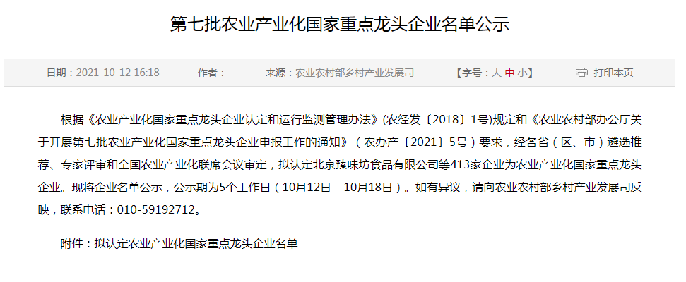上榜!福建長富入選農業產業化國家重點龍頭企業