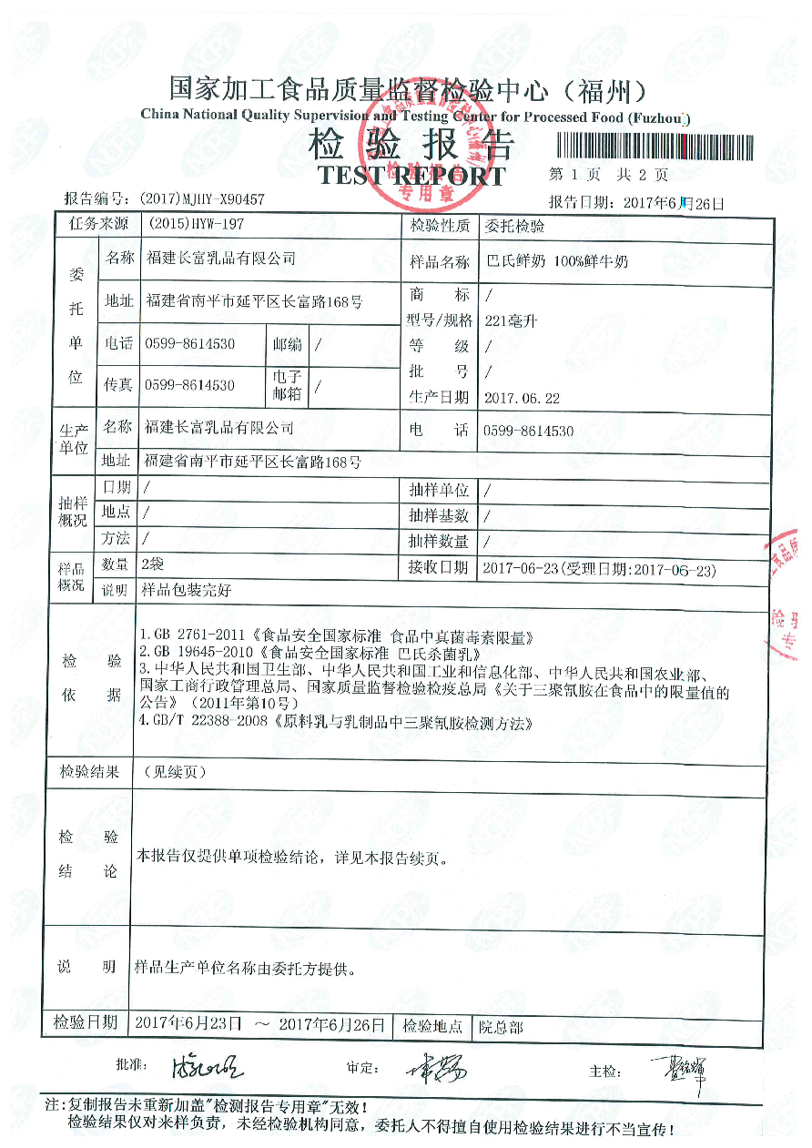 more長富牛奶2017年6月20日質(zhì)檢所冷鏈檢測報(bào)告