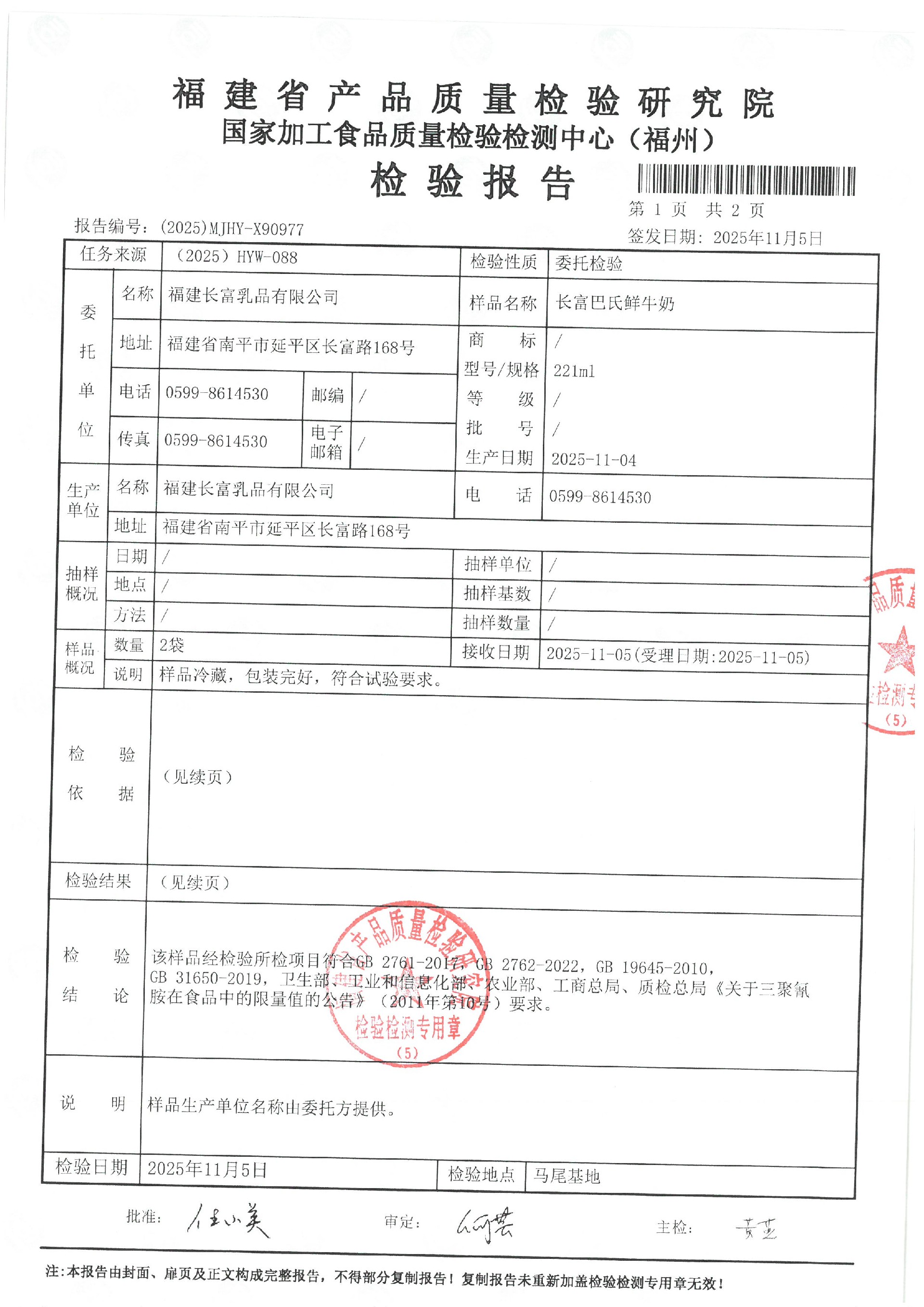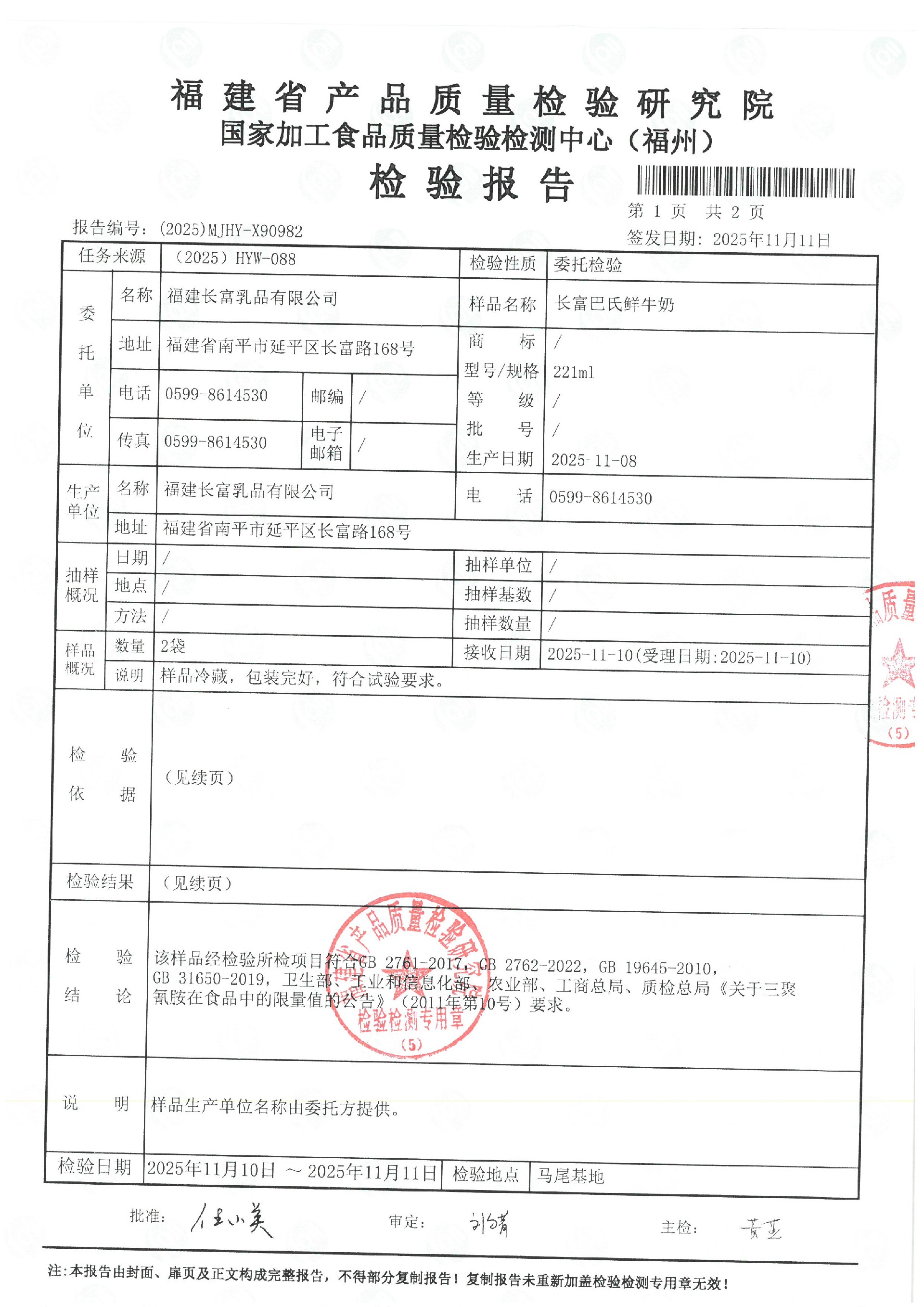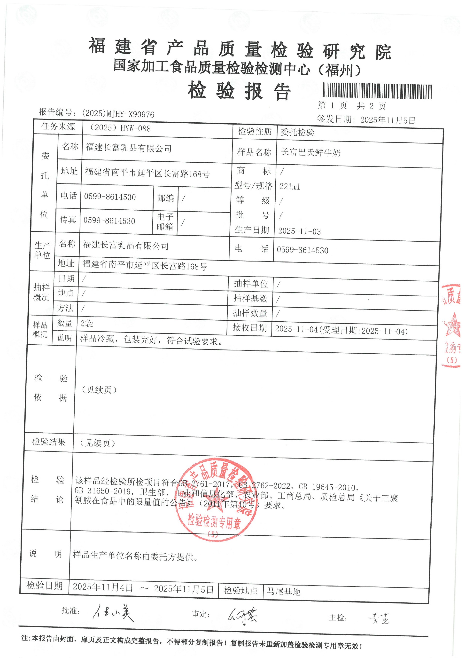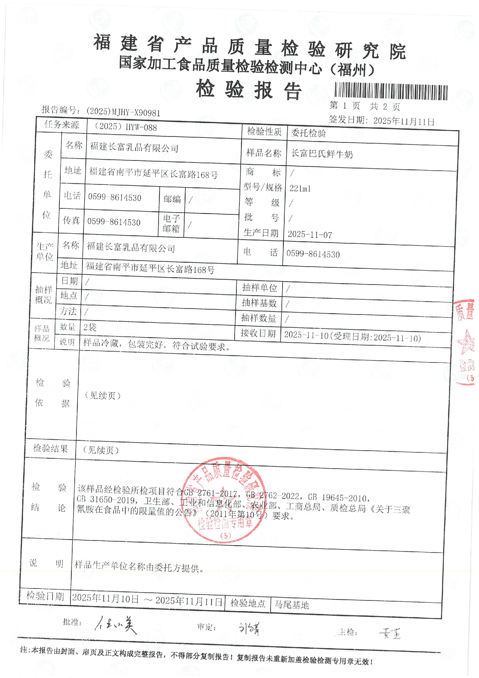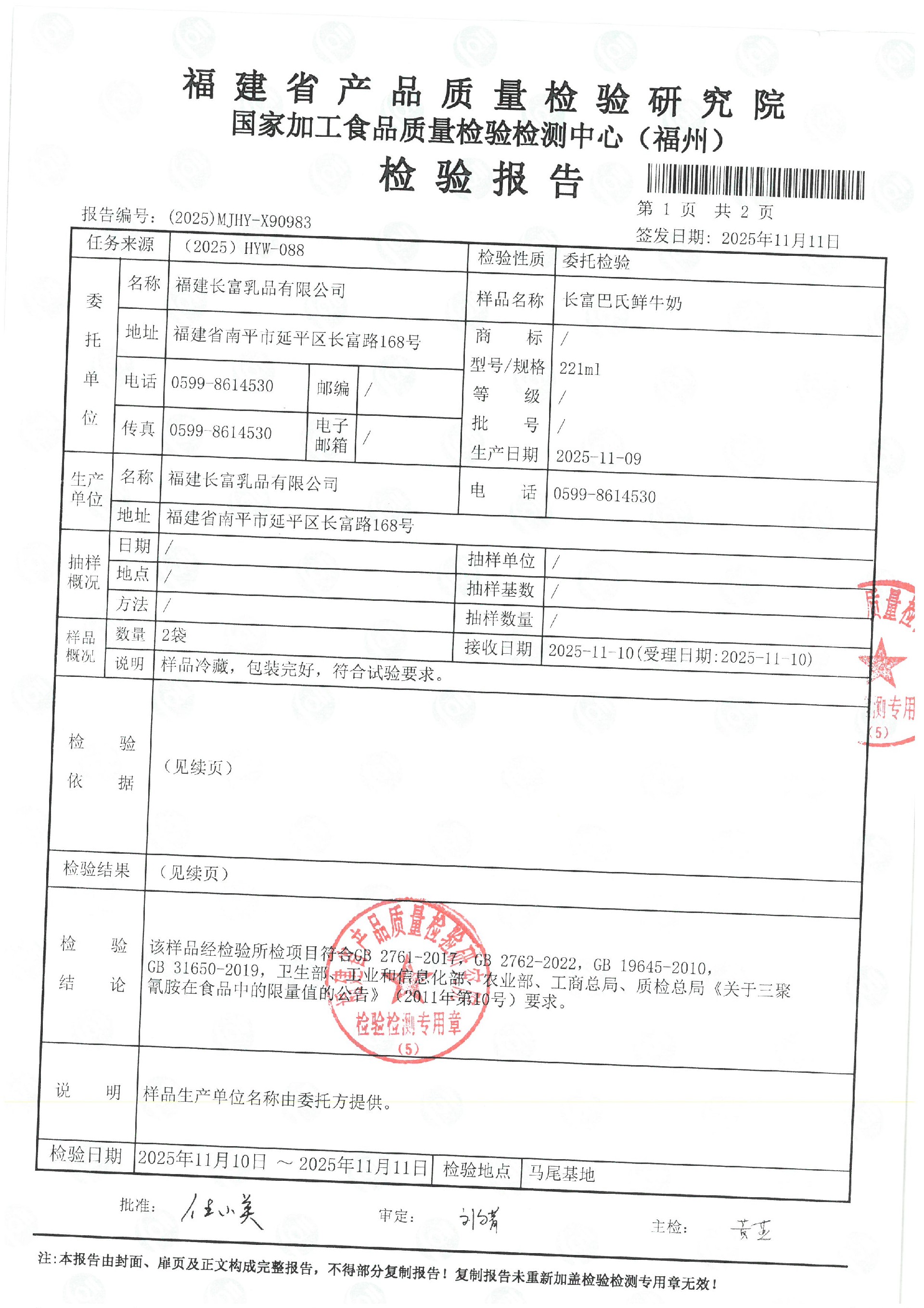 more長富牛奶2025年11月10日省質(zhì)檢院冷鏈產(chǎn)品檢測報(bào)告