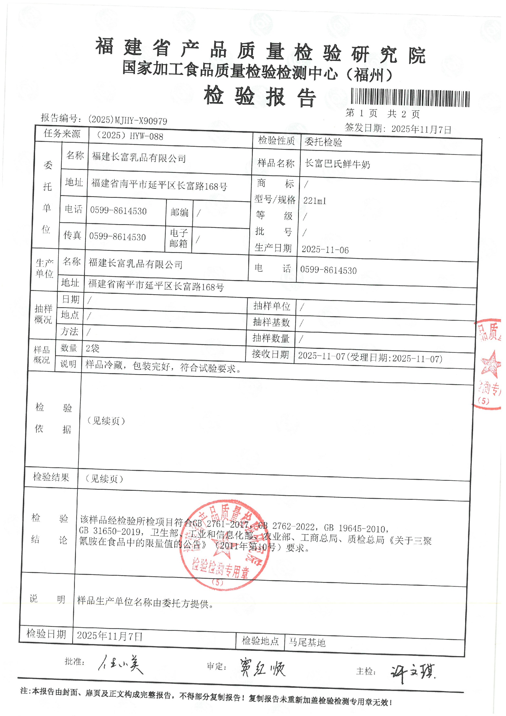 more長富牛奶2025年11月7日省質(zhì)檢院冷鏈產(chǎn)品檢測報(bào)告